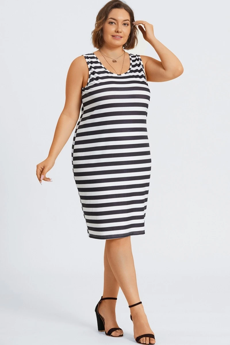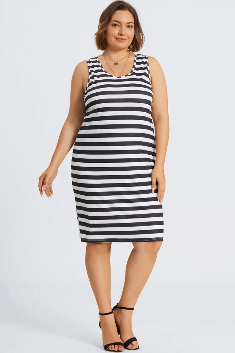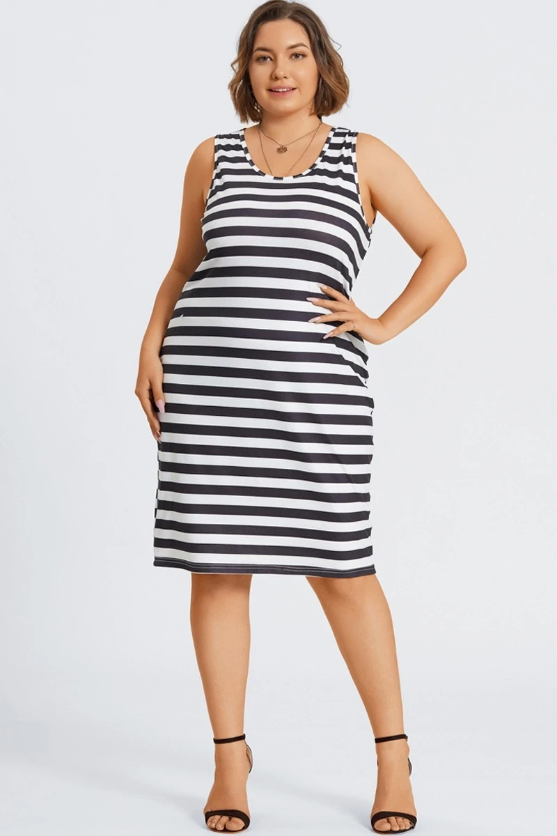 - This sleeveless striped dress has soft skin-friendly fabrics and a round neck design. It is suitable for various life scenes and is a versatile skirt.
